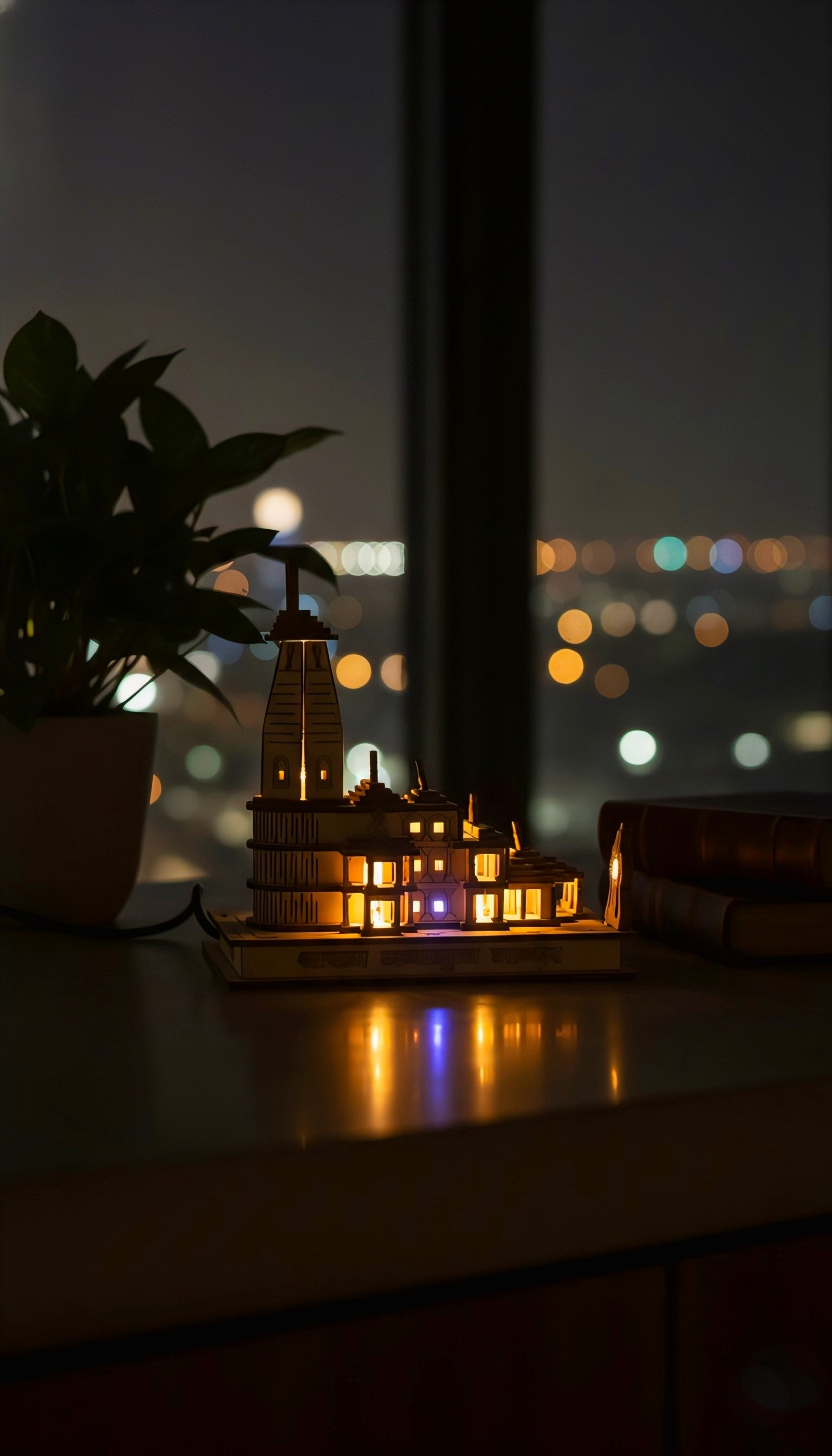 Miniature Ram Mandir with LED Lights – Wooden Temple Model by VoobooToyz